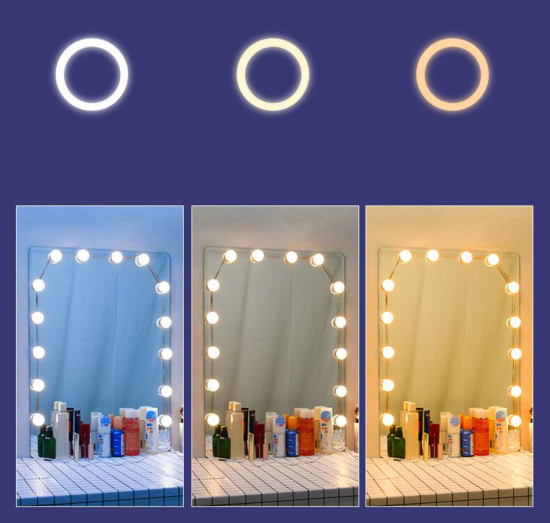 50mm 10 LED Espejo Luz de relleno Lámpara Brillo ajustado Lámpara de 3 colores