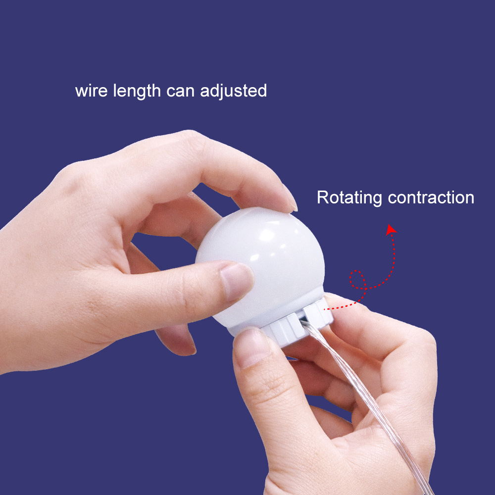 Función: botón de encendido por inducción de escaneo manual, 3 colores ajustados, luz blanca, luz cálida, luz neutra. Carga USB duradera para su uso. La longitud del cable se puede contraer, ajustar el tamaño a su gusto.